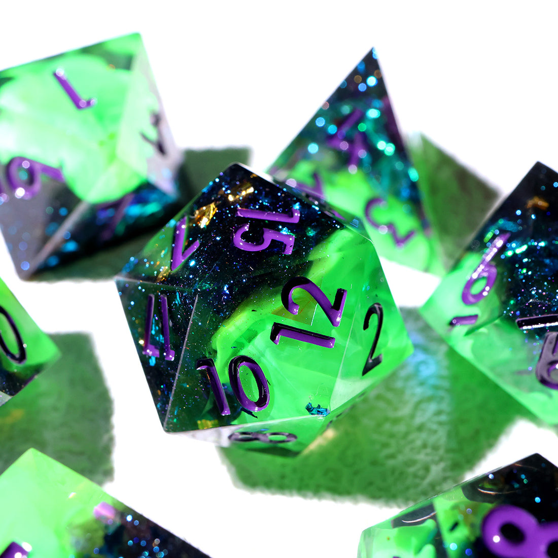 The sudden rise in interest for sharp edge dice began in 2019. What started as a cottage industry of small dice artisans making one-off sharp edge dice sets at home has now exploded into the mass-market world. This mass-market production of sharp edge dice sets is necessary to meet the growing demands for this new, eye-catching style of dice.
