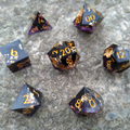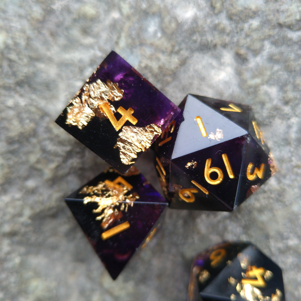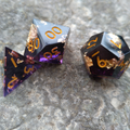 These resin dice sets are handmade by Everything Dice's team of skilled resin artisans, each die carefully inspected for both visual quality and durability, ensuring they will hold up to casual play. Each set includes a d4, d6, d8, d10, d%, d12, and d20.