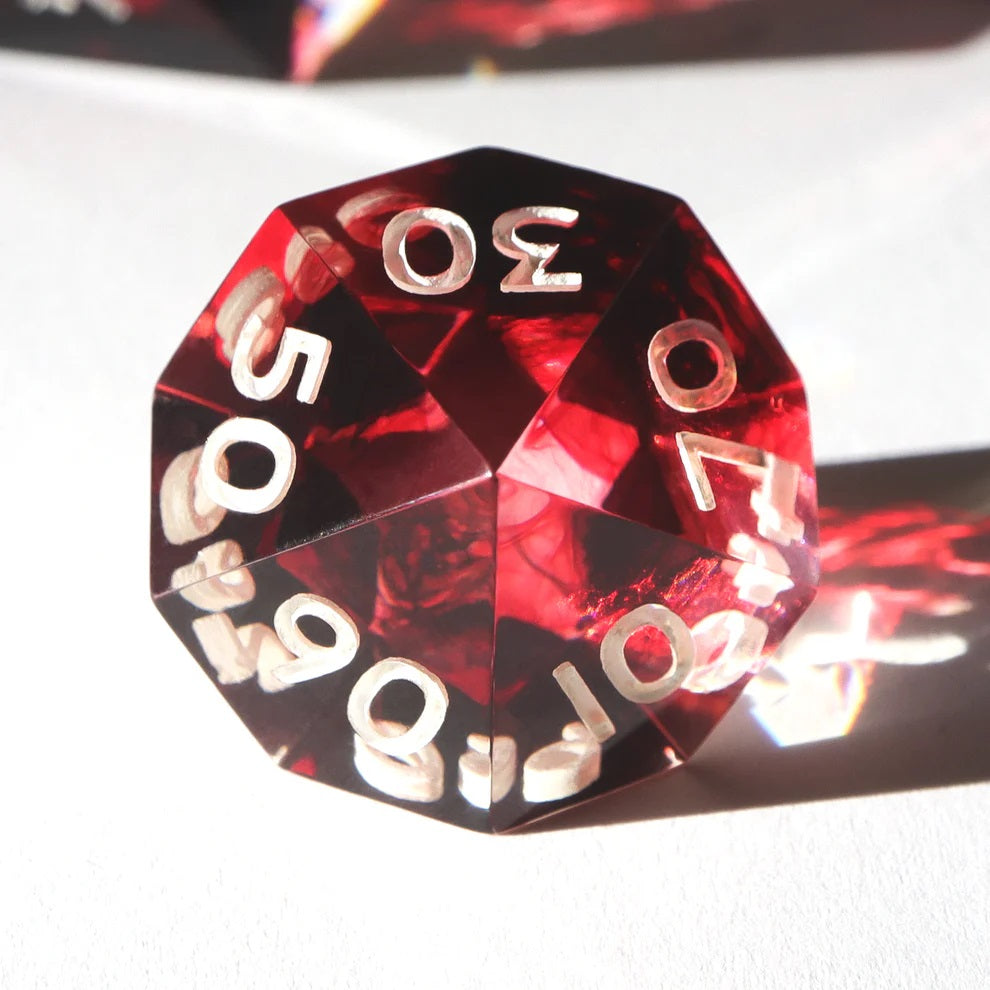 These resin dice sets are handmade by Everything Dice's team of skilled resin artisans, each die carefully inspected for both visual quality and durability, ensuring they will hold up to casual play. Each set includes a d4, d6, d8, d10, d%, d12, and d20.