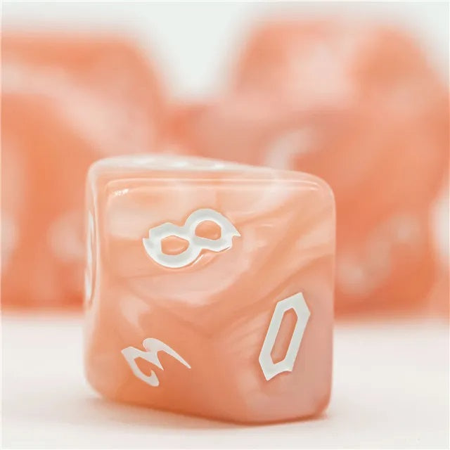 What you get within each purchase is a mystery, but we can guarantee that you won't get two of a kind within one order. There are all sorts of options from solid-color dice, multi-color swirl dice, glittery dice, dice with small objects set inside, and more! What will you receive?